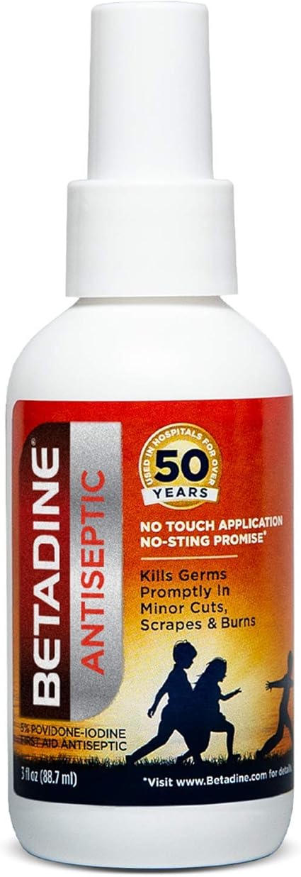 Betadine dry powder spray. It remains a go-to antiseptic used both in hospitals and homes for the treatment of minor cuts scrapes and burns as may occur from minor household accidents or bicycle falls. Betadine dry powder spray 55gm 10 PVPI Antiseptic Solution For treatment of skin infections. Most OTC drugs are not reviewed and approved by FDA however they may be marketed if they comply with applicable regulations and policies.