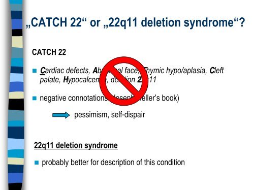 Catch 22 digeorge syndrome. Main problem is related to the immune system due to aplasia of the thymus T cells are unable to mature. DiGeorge syndrome also known as 22q112 deletion syndrome is a genetic disorder caused by a small deletion in chromosome 22 at position. We report the clinical findings in 44 cases.