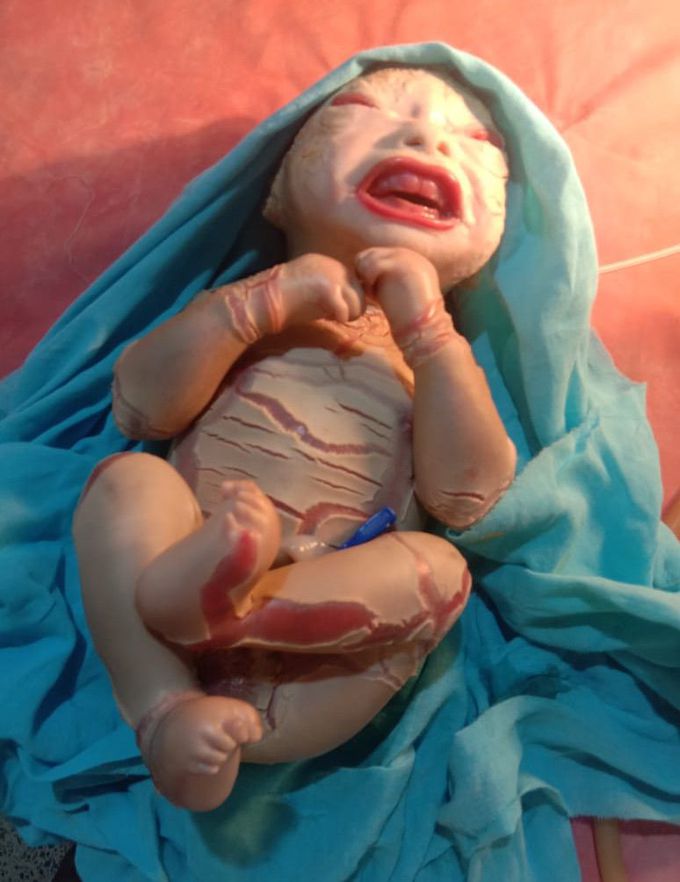 In 1988 Lance et al. One condition is that does this is called as Harlequin Ichthyosis HI Harlequin baby syndrome or Ichthyosis Fetalis which is a rare and severe genetic disorder that affects the skin of the infants per se. Most cases are thought to occur when nerve bundles particularly ones in the face and neck are injured.