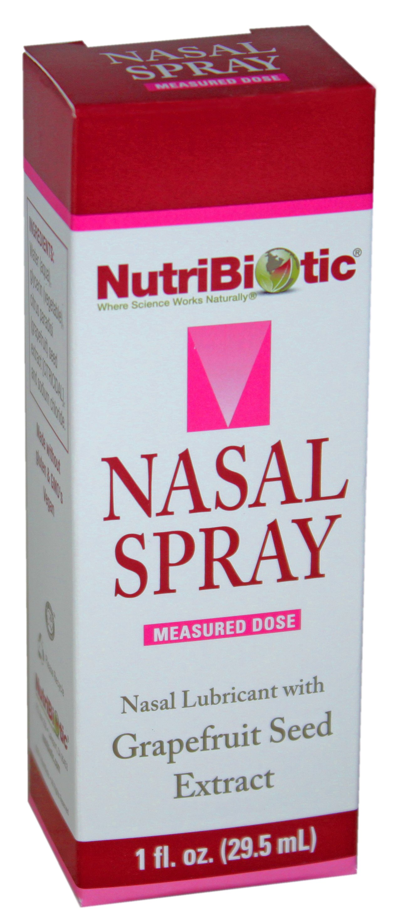 Grapefruit seed extract spray. NutriBiotic Nasal Spray is an excellent nasal lubricant containing grapefruit seed extract and sodium chloride in a convenient measured dose pump. Some of the symptoms of H. NutriBiotic Throat Spray uses Grapefruit Seed Extract as an immune booster.