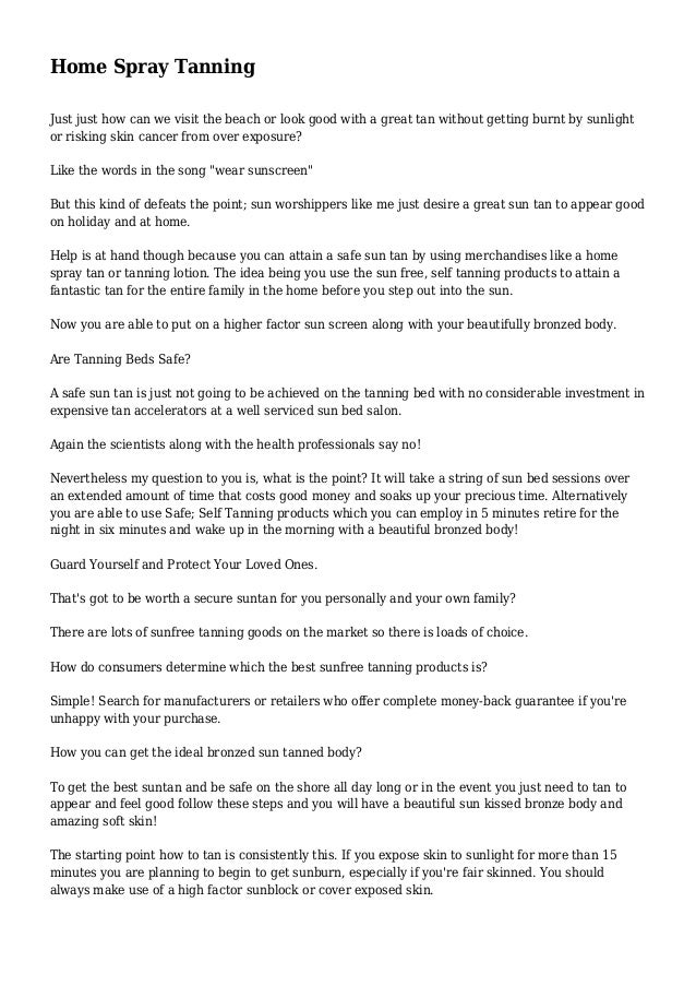 In order to achieve a sun protection factor SPF similar to a lotion or gel you need to spray each body area for up to six seconds. 43 out of 5 stars20. Spray tanning is the process of spraying a specifically composed solution on your skin to induce tan as similar to the one you get from the sun. 29952995374Fl Oz Save 10 when you buy 5900of select items. 1-48 of 289 results forindoor tanning spray lotion. Spray sunscreen studies show that many people apply only one-quarter the needed amount. You need to apply a sunscreen with SPF 30 or more to protect your skin from the sun. At-home tanning lotion Heres why. Using a lotion before this especially in the first 8 hours can disrupt the development of the spray tan causing it to not take to the skin and tan evenly across the body.