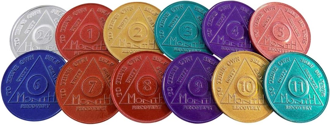 See more ideas about big. The words To Thine Own Self be True The three pillars of service Unity Recovery Service. To assist with flood recovery. The secretary takes names of those who got chips and congatulates them in the secretary report. 90 meetings in 90 days. The custom followed by some AA groups of handing out small medallions called chips some use keytags to mark various anniversaries of AA CA NA members sobriety dates. AA Recovery Sayings. The length of time of sobriety prominently stamped in the center of the coin. In AA AA chips or sobriety coins are often given to individuals as they approach important milestones in.